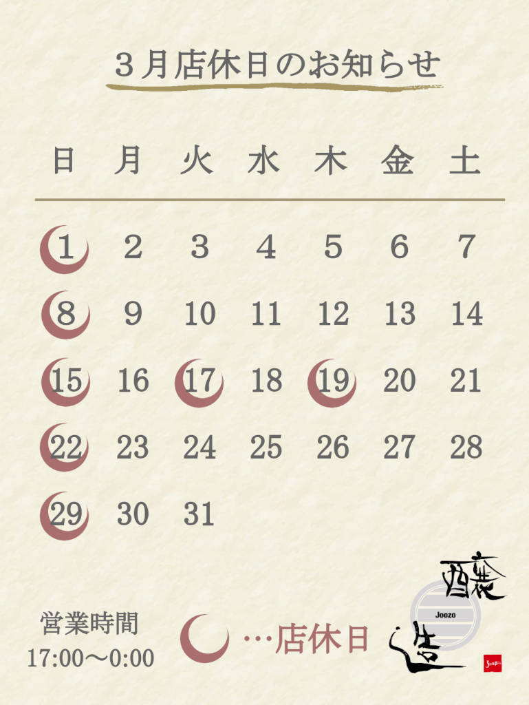 3月店休日のお知らせ