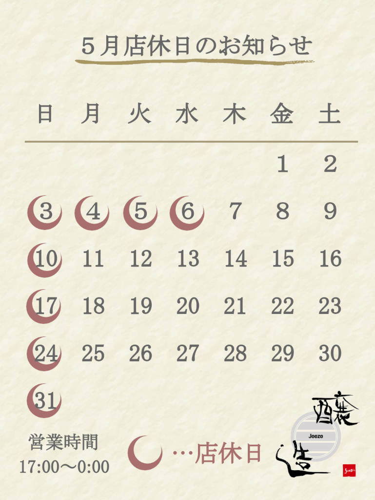 5月店休日のお知らせ